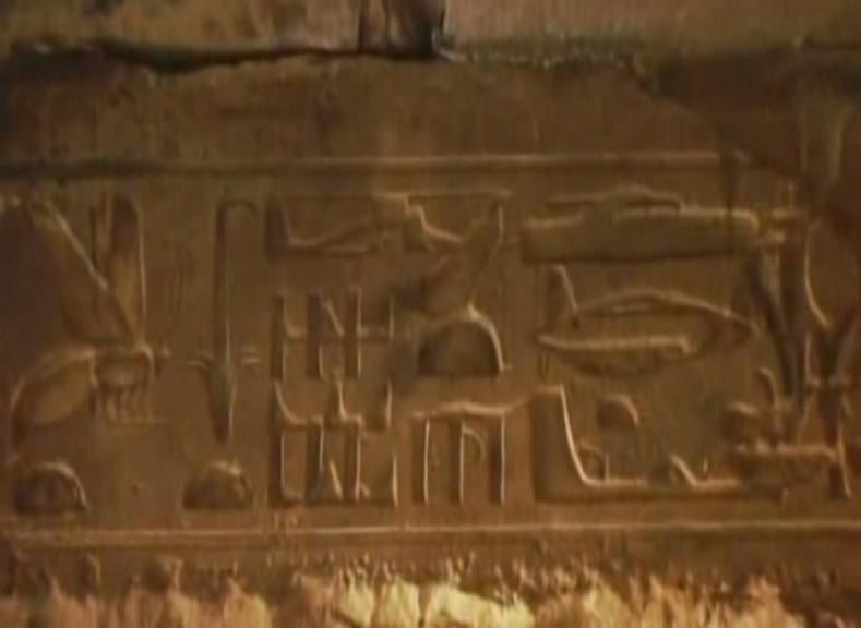 На третьому - (а це малюнок на стіні храму в Абідосі, в Єгипті, датований традиційно