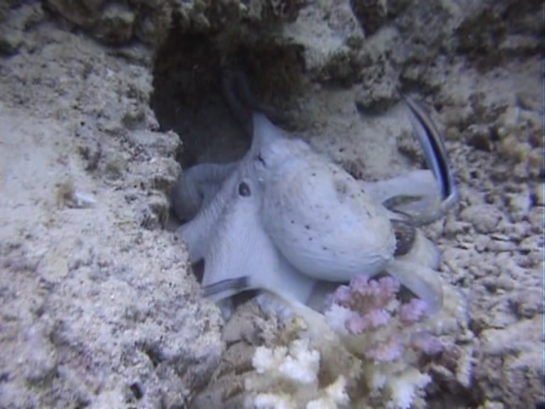 що недалеко є великий восьминіг... і він, забувши про проблеми з цим рефлексом,