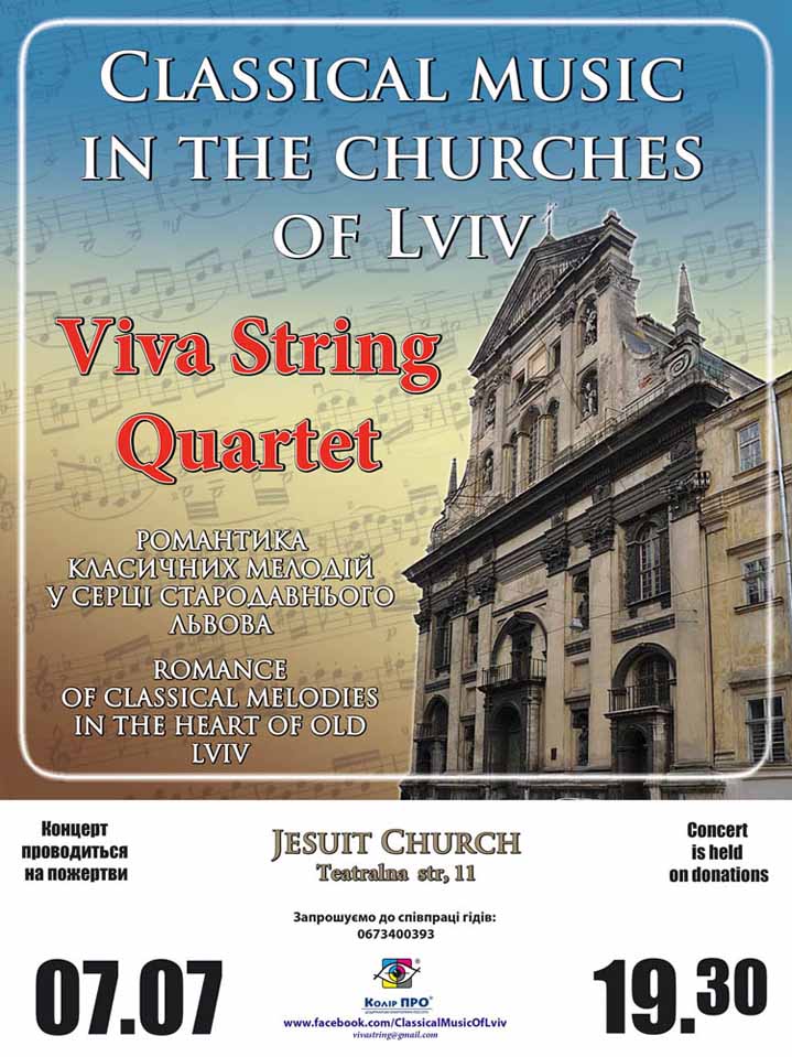 Наступний концерт Viva String Quartet в костелі Єзуїтів вiдбудеться 7 липня о 19.30.
