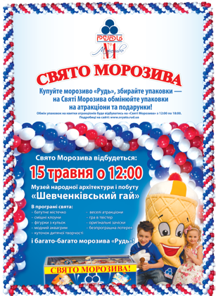 Свято морозива пройде 15 травня у Львові під патронатом житомирського заводу «Рудь». Дійство буде відбуватись у музеї народної архітектури та побуду «Шевченківський гай» о 12 годині. Про це повідомляє сайт компанії.