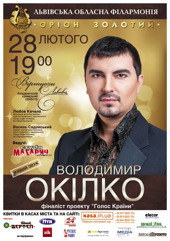28 лютого, 19:00 - Концерт Володимира Окілко "Золотий Оріон"